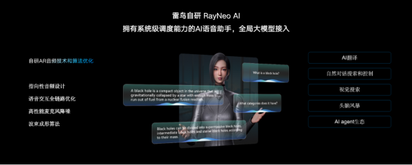 AI大模型运用落地是雷鸟立异本年在产品技能布局上的重要效果之一。凭仗着完好的AI+AR生态系统,雷鸟立异发布了首个AI+AR眼镜操作系统RayNeo AI OS,为AR眼镜供给高效、快捷、多模态的交互体会,并支撑如智能助理、AI翻译、识图等多种AI运用与场景。此外,雷鸟立异还为开发者供给AI Studio低代码开发渠道、AI Store共创社区,进一步推进了AR运用的多元化展开,为加快推进AR职业“杀手级”运用(Killer App)到来打下根底。值得一提的是,雷鸟立异依据RayNeo AI OS打造的大模型语音帮手RayNeo AI正在展示出极高的用户吸引力,数据显现,自功用上线以来,月平均运用时长出现继续直线上升的趋势,增加率高达 429.4%。与此一起,雷鸟立异与博士眼镜建立了合资公司联合打造AI眼镜,这一协作形式将进一步加快AI眼镜的研制与量产进程,并为智能眼镜的大规模商场推广奠定了根底。
